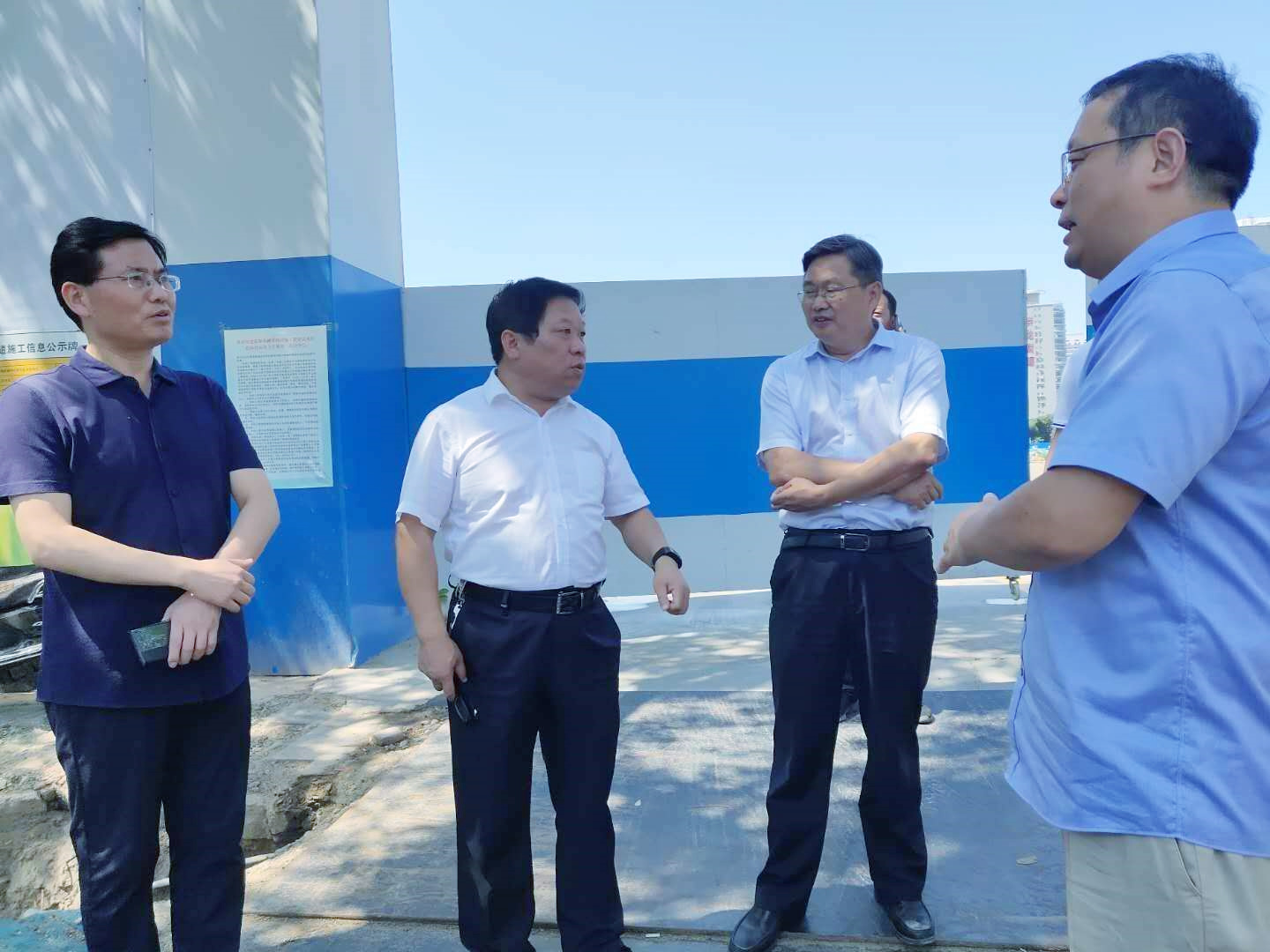 期間,對迎賓路提升工程采用高規(guī)格裝配式圍擋的做法給予了充分肯定,建議市政工程推廣應(yīng)用。同時,鄭對東新區(qū)房建工地率先落實實砌圍墻的做法給予了充分認可,提倡全市房建工地進行學(xué)習(xí)推廣。